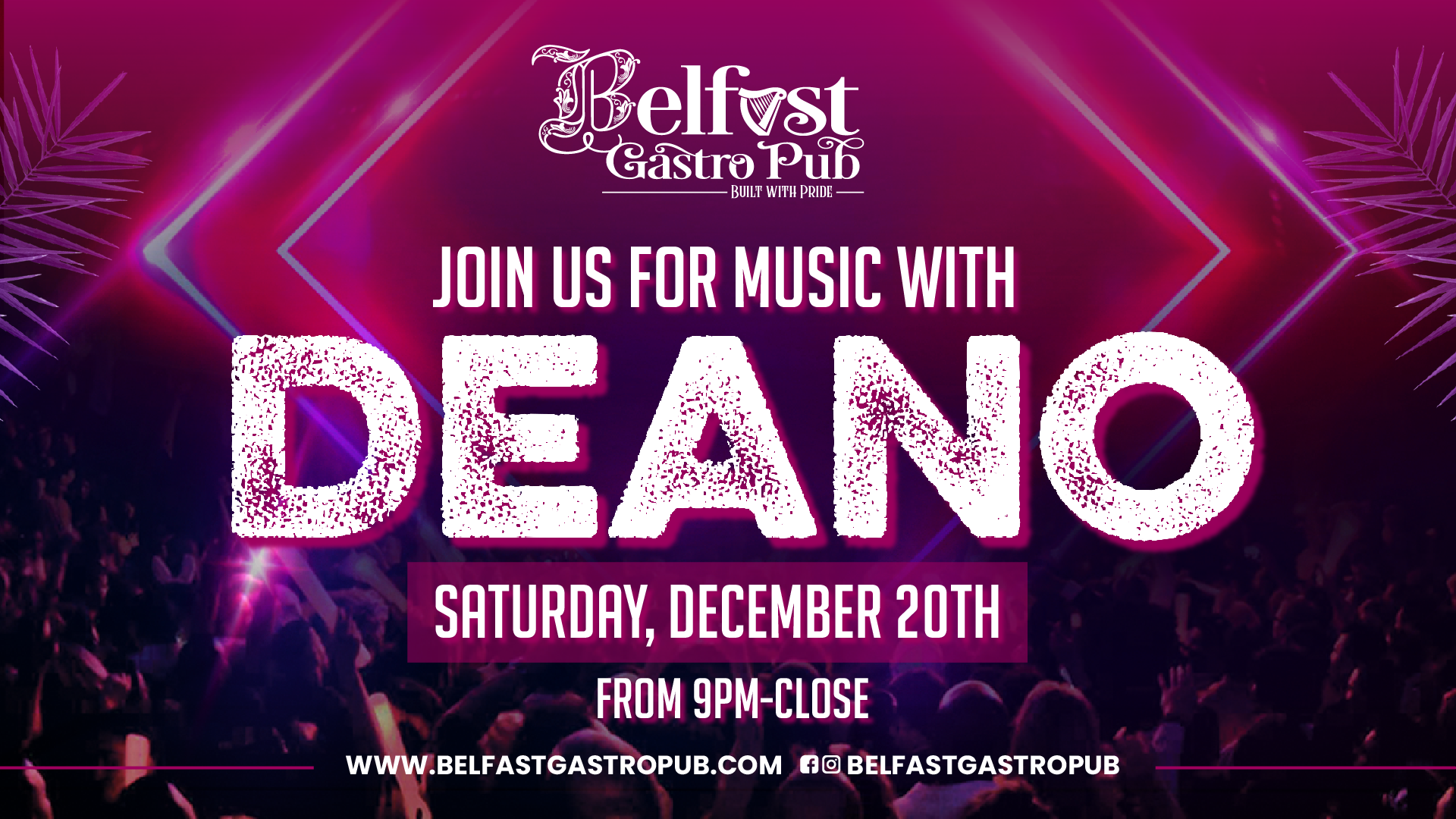 Back to All Events Music with DJ Deano Saturday, December 20, 2025 9:00 PM Sunday, December 21, 2025 2:00 AM Google Calendar ICS Keep the weekend rolling at Belfast this Saturday! Mark Danti takes the stage from 6–9 with live music to get the night started, then DJ Deano keeps the energy up until close. Come for the music, stay for the good times!