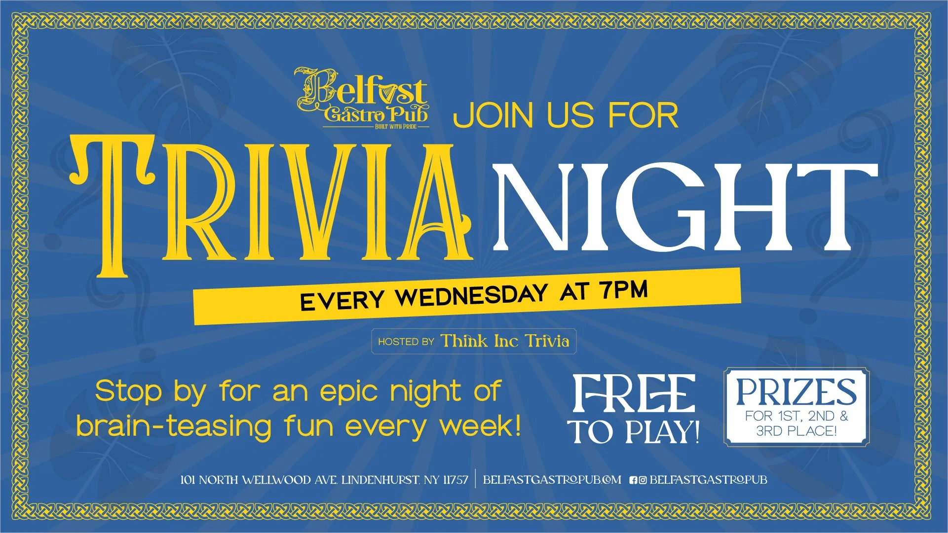 Trivia Night is back at Belfast tonight at 7 PM! 🧠🍺 Grab your friends, put your knowledge to the test, and win some fabulous prizes.